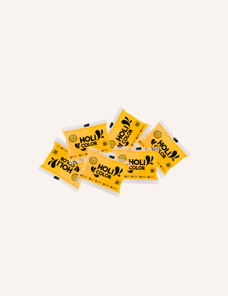 Take the fun everywhere with our pack of 100 75g Holi bags! 🌈🎉 Contains Holi-Gulal powders of different colors: yellow, orange, blue, pink, green, violet, red, black, white or multicolored assortment. They are high quality powders made with 100% natural food ingredients and GLUTEN FREE. In addition, they are fire retardant, they are not toxic or harmful to health or the environment.